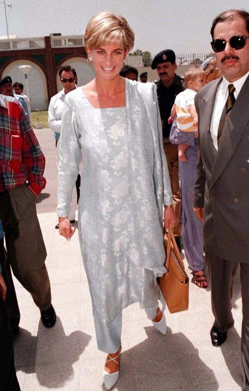 この時期にはダイアナ妃の新しい恋愛も話題になる。パキスタン系イギリス人の心臓外科医、ハスナット・カーンとの恋愛は映画化もされた。カーンとの交際中には、彼の家族に気に入られようと、パキスタンへ足を運んでいる。パキスタンでは、伝統的なパンジャビ・スーツ(長めのチュニックとパンツがセットになった南アジアの民族衣装)と西洋文化を融合したようなモダンなスタイルで人々を魅了した。この装いはまた、カーンヘに対してなにがしかのメッセージを送っていたのかもしれない。