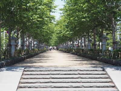 若宮大路の段葛。和田合戦ではこの付近でも戦闘が展開した