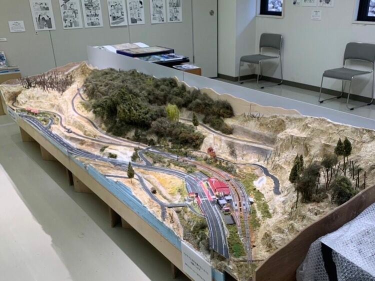 このジオラマ、なんと江上さんの手作り! まだ完成していなくて、漫画展の期間中にどんどん進化しています。リアルタイムのジオラマの変化を見たい場合はぜひ公式Twitterをフォローしてみてください。