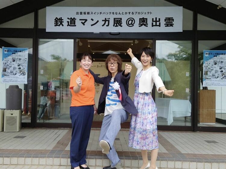 ここまで木次線のスタンダードな旅をご紹介してきましたが、今の期間にぜひ訪れてほしいのが、冒頭でも触れた「鉄道漫画展@奥出雲」です。三井野原駅が最寄りの「奥出雲 鉄の彫刻美術館」で行われているこのイベントの仕掛け人は、江上英樹さん。私も登場させていただいた実録・鉄道旅漫画『鉄子の旅』の元編集長です。
