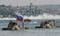 セバストポリ港で行われたロシア海軍記念日のパレードのリハーサル。ミサイル巡洋艦「モスクワ」の前を水陸両用車が隊列を組んで走行している(資料写真、2017年7月27日、写真:ロイター/アフロ)
