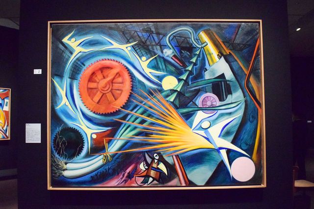 この時期の代表作《重工業》。農産物と重工業、人間の生命と巨大な機械など、対立する要素が激しくぶつかり合っている。