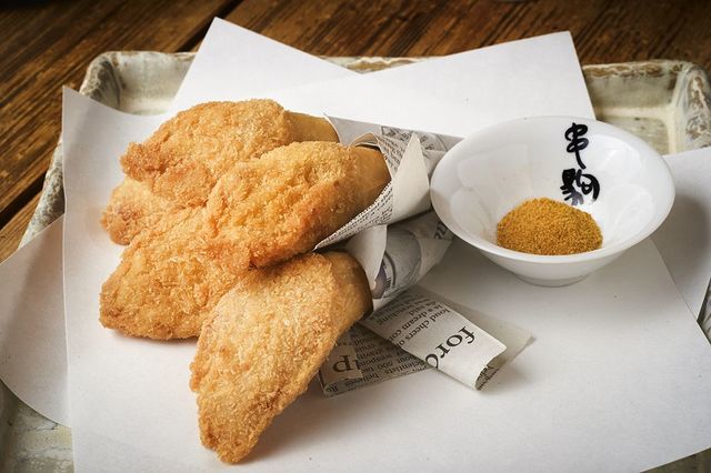 酒が止まらない肴が揃うが、意外なのは、おすすめ料理の一品が「コロッケ」であること。正式名称は、「串駒手巻きコロッケ」。十分すぎるほどに気の利いたアテがある店で、なぜにコロッケ。しかも手巻きって、どんなだ?