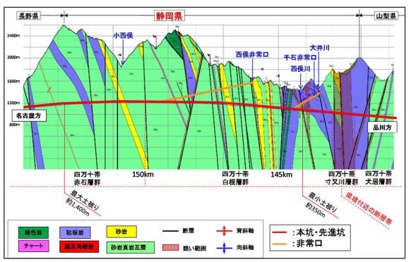 リニアのトンネルは、地質条件が悪い場所を通るので、さらにリスクが高まる恐れがある(図2)。