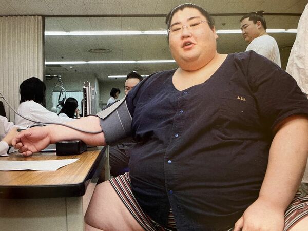 血圧を測る日本人力士最重量の山本山。不本意な形での引退がなければナンバー1になった可能性も。