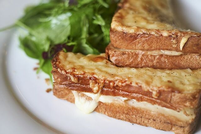 「クロックムッシュ」とは、1900年代初頭にオペラ座近くのカフェで誕生したホットサンドで、パンにベシャメルソースとチーズ、ハムを挟んで焼き上げたもの。めちゃくちゃ熱いことが想像できたうえに、石井氏が舞台化粧のままレヴュの合間に買いに行ったというエピソードから、てっきり「底冷えする巴里のお夜食」的なたべものかと思っていたが、実は朝食からランチにいただくのが一般的らしい。