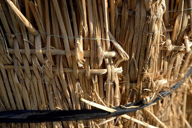 「たとえば、八女伝統本玉露は「すまき」という稲ワラを編んだ覆いを茶園のチャノキの上にかぶせて、日光を遮断します。これは八女でしかやっていません。他産地の玉露も、遮光はしますが、たとえば、八女と品評会で常に1位を争う、京都も、ほかの玉露の産地も、みんな、化学繊維の覆いを2枚がけで使います。化学繊維のものは、目が均質で、日光を完全に遮断するのですが、手作りで自然仕立ての「すまき」では、自然光の木漏れ日が、程よい光合成になって、特有の「覆い香」という香りを醸し出し、自然界のバクテリアの作用によって特有の甘みを作り出すのです。そして、ひとくちに「すまき」といっても、稲の生育状態が良かった年のワラかどうか、「すまき」の上に、さらに、ワラを載せて遮光をする「振りワラ」という技術もあるのですが、その塩梅によっても、味や香りは変わります」