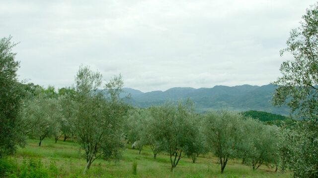高松空港や市の中心地からも好アクセスの「澳オリーブ」のオリーブ畑。木と木の間が6メートルと広いのが特徴。