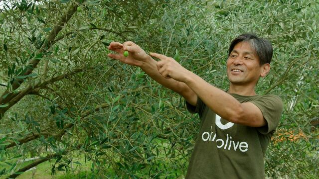 8年前のことだ。4年前から製造を始めたオリーブオイルは、200mlで12,000円という高値だが、発売と同時に即、売り切れてしまう。澳さんの指導の下、初めてのオリーブ収穫を体験しながら話を聞いた。