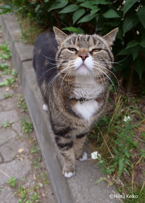 そんな抜け道を歩いていると、猫が現れます。家の玄関から中庭を見ていた猫は、咳払いのような小さな音を立てました。注目してほしかったのでしょうか。
