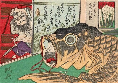 鯉のぼりの中で情交する男女。当時の庶民生活は夫婦の寝室というものがなく、庶民の暮らしにプライバシーという概念も希薄だった