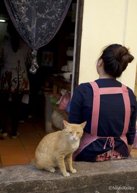 ルアンパバーンで出会った黒猫たちはみな、黒の質が違うというのか、「漆黒」と表現したくなるような重厚な黒色をしていました。黒猫は見分けがつきにくいのですが、目の色やシッポの長さで個体を識別するようにしています。