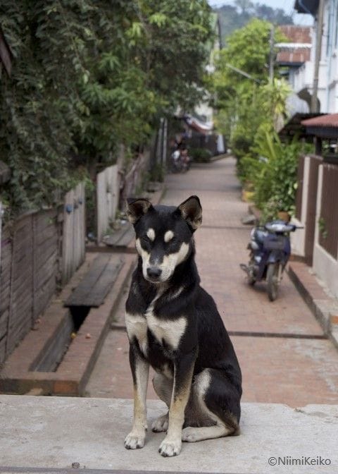 その路地の先にあるお寺では、本殿の階段で犬が休んでいました。通りかかった観光客が、「Holy Dog(聖なる犬)」と呟いて、犬に合掌していました。たしかに犬の寝顔は、微笑みをたたえているように見えました。