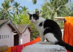 このお寺には、赤トラ猫が数匹いて、どの猫も愛嬌たっぷりで性格も柄もそっくりです。たぶん、兄弟なのですが、つま先の白い猫、頬がぷっくりしている猫、シッポの先だけ白い猫と、少しずつ違いがあることに気づきました。みんな、とても幸せそうでした。