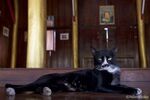 日が暮れて、夕べのお勤めも終わり、夜のしじまが訪れました。昼間とはまたちがう猫たちが姿を現しました。猫たちが2交代制で境内をパトロールしているお寺もあります。夜シフトの猫は、夜目を効かせて、昼間の猫たちよりもさらに鋭くあたりを見渡していました。