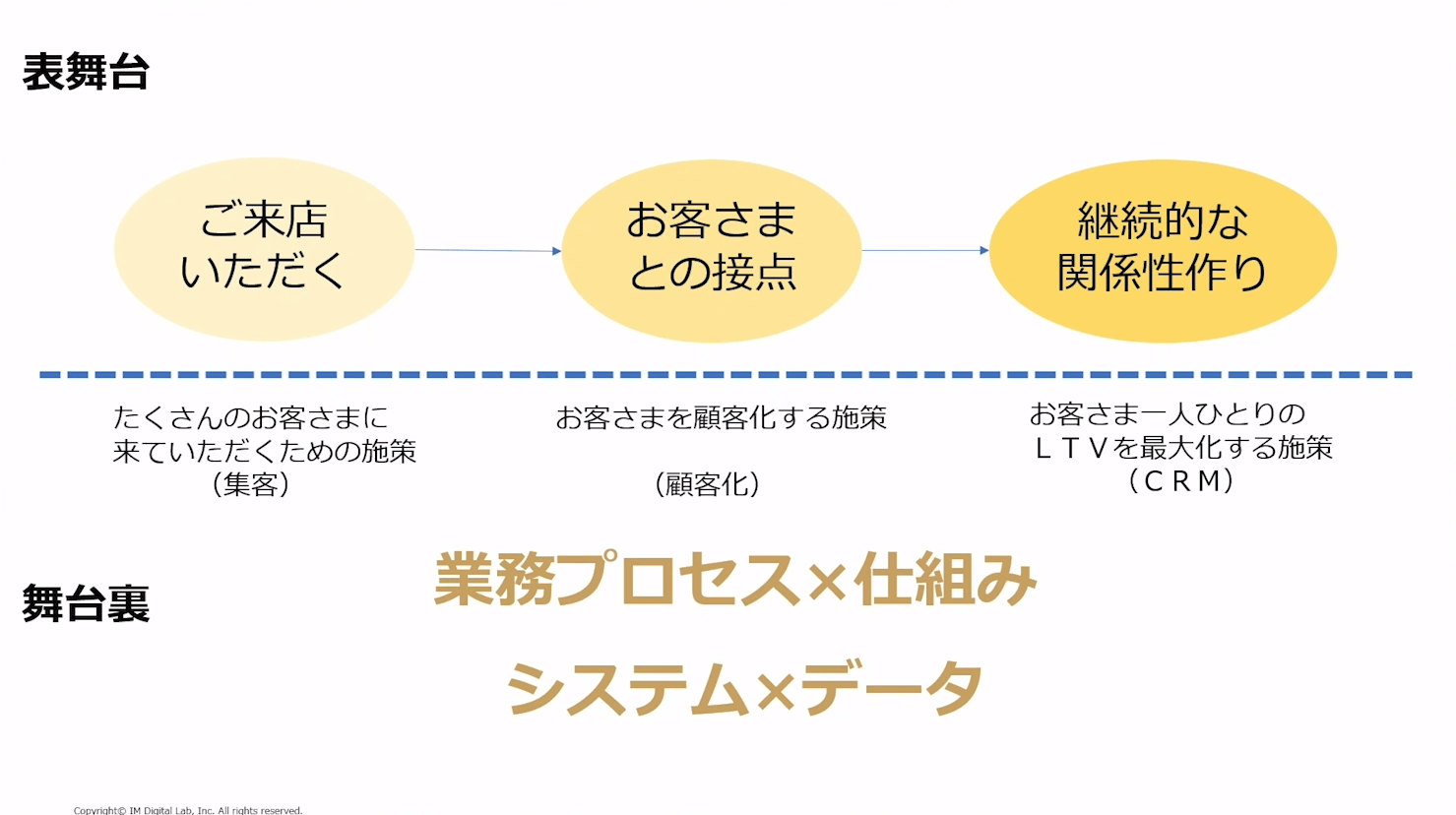 「一人一人のお客さまを大切にしながら、ご来店いただいて接点を持ち、継続的な関係性をつくり続けていくということです。約2年間のコロナ禍を経て、業績は回復傾向にあるものの、消費の二極化、顧客構造の変化、オンライン化の加速などにより、従来型のマーケティングは限界を迎えています」