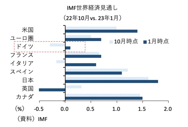 暖冬を背景に、ドイツを筆頭とするユーロ圏の復調が特筆されることは過去のコラムでも論じた通りだが、ドイツやイタリアは過去3カ月間でリセッション予想が覆ったことになる(図表①)。