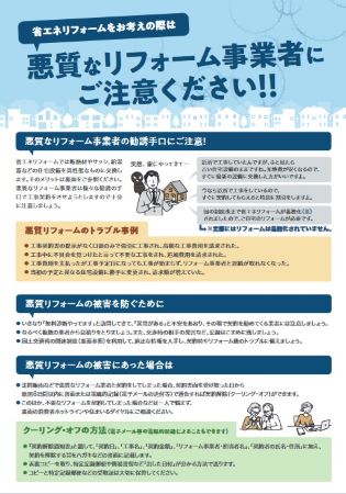 国土交通省ではこうした事態に対して危機感を抱き、2022年10月に、「悪質なリフォーム事業者にご注意ください!!」と題したリーフレットを作成した。