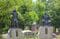 桶狭間古戦場公園の今川義元と織田信長の銅像 写真/フォトライブラリー