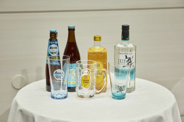 サントリージン 翠 SUI、サントリー 角瓶とともに並ぶビアボール
