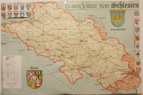 地名がすべてドイツ名になっているのでわかりにくいかもしれないが、これはドイツ語で「シュレージェン」と呼ばれる地方を1つに収めたものである。ゲルリッツから東へ細長く伸びるこの地域は、今現在はほとんどがポーランド領になっている。ポーランド語では「シロンスク」と呼ばれる地域だ。
