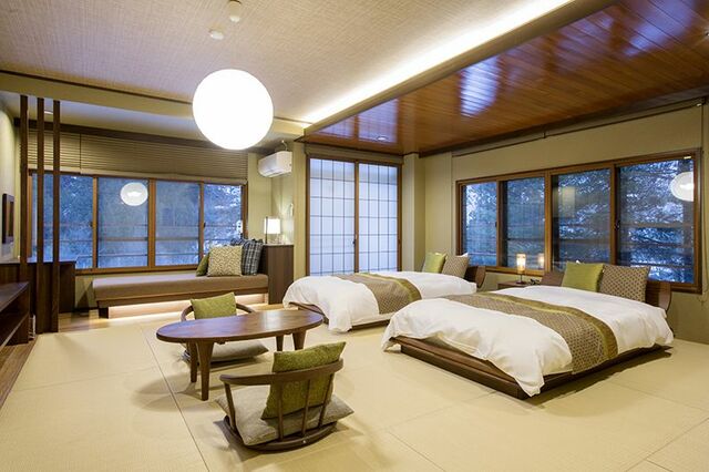 飛騨の匠の技を受け継ぐ家具が揃う客室もある