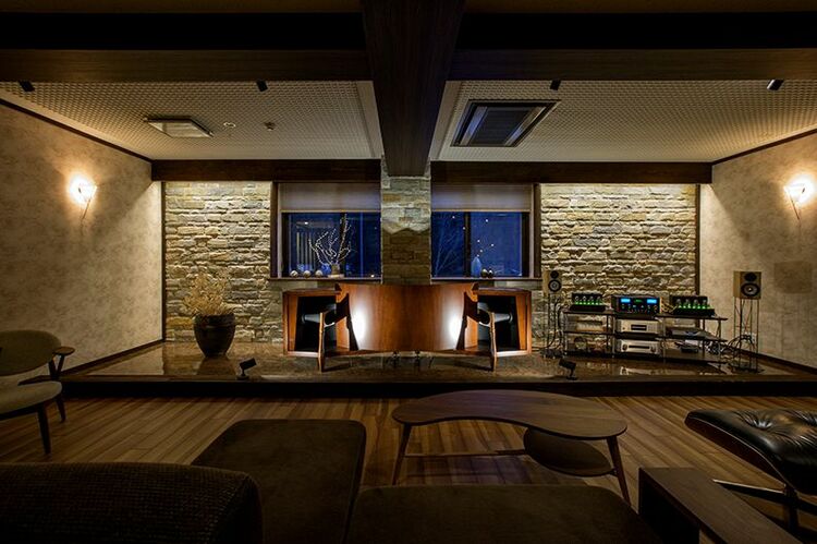 湯上がりは部屋でゴロゴロ、またはリニューアルで誕生した「音泉リビングParagon」で寛ぐ。二代目主人の沖本啓介さんが学生時代、東京のジャズバーで出合ったというスピーカー「Paragon」でフュージョンやジャズなどの音楽が気持ちよく流れるなか、読書や珈琲も楽しめる。「温泉が好きな人は音楽も好きなはずだ」とご主人。