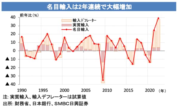 名目輸入は2年連続で大幅に増加