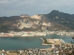 女木島灯台から見る瀬戸内海。対岸には高松市街のビルが見える