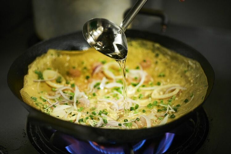 後から知ったことだが、生地は米の粉。お米の国同士の親和性に、異国情緒、味わいの優しさ。そんなこんなで、今回は、素朴でフレンドリーなベトナム家庭&ストリートの味、「バインセオ」のレシピと相性抜群のワインをご紹介。工程はシンプルながら、ホームパーティで用意しても喜ばれるので、レパートリーにぜひ加えてみてほしい。