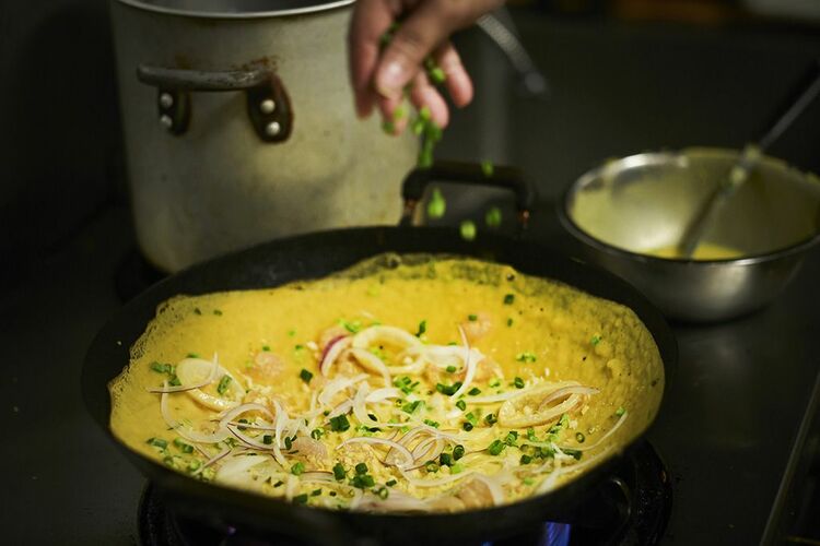 ※店舗では40㎝ほど(約3人分)の特大サイズで提供していますが、熟練度が必要なため、ご家庭のフライパンの大きさに合わせてお試しください。