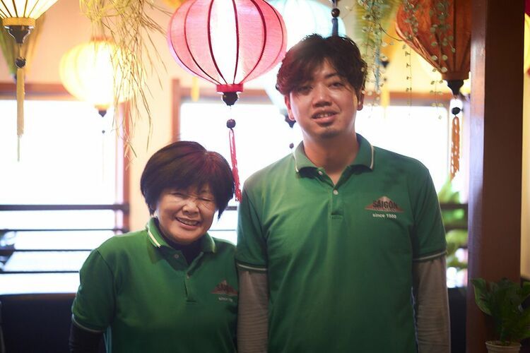 「サイゴンレストラン」トランアンチュンさん(右)、お母様の安倍美智子さん(左)