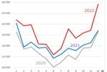 次の図は、ワクチンの接種回数(部分接種を含む)である。2022年2月に追加接種が始まったあと、超過死亡が大幅に増えたが、2021年に接種回数が最大だったときは死者はそれほど増えていない。第5回接種では相関は崩れている。