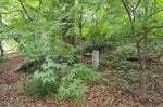 墓地の背後の緑地に小川が流れている。かつてはここが奥沢城の防禦線だった