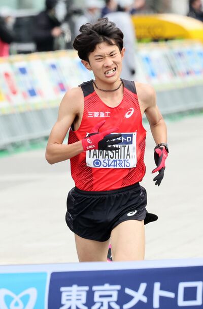 ふたりは一昨年のびわ湖毎日マラソンで1秒差の大接戦を演じている。初マラソンの山下が2時間8分10秒、其田が自己ベスト(当時)の2時間8分11秒をマークしているのだ。今回は現役学生である山野力(4年)が初マラソンに挑戦。2時間16分25秒に終わったが、日本新ペースに25㎞まで食らいついた。