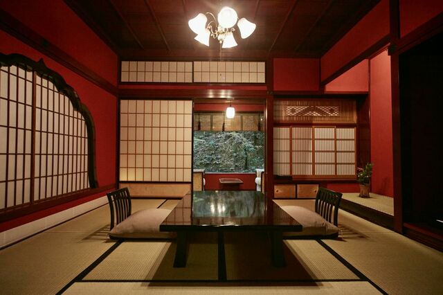 15代はほかの旅館の旦那衆とともに魯山人と親しく交わり、 書画や看板などを注文して魯山人の生活を支えました。「あらや滔々庵」では魯山人の初期の陶芸作品の赤絵皿や、烏によって温泉が発見されたという烏湯縁起にまつわる暁烏の衝立など、魯山人ゆかりの作品をロビーや作品展示室等で見ることができます。