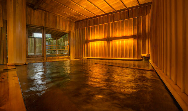 また、1日約10万リットルという豊かな湯量もこの宿の魅力です。ナトリウム・カルシウム硫酸塩・塩化物泉という泉質の湯は、大正初期にドイツで開催された万國鉱泉博覧会で金賞を受賞しているそうです。