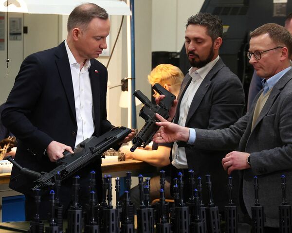 武器工場を視察するポーランドのアンジェイ・ドゥダ大統領(左)(資料写真、2023年3月17日、写真:ロイター/アフロ)