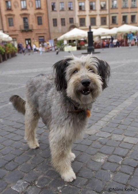 旧市街のマーケット・スクエアを散歩していた犬は、飼い主さんが友人と話し込んでいます。はやくボール遊びをしてくれと、催促する声を出していました。