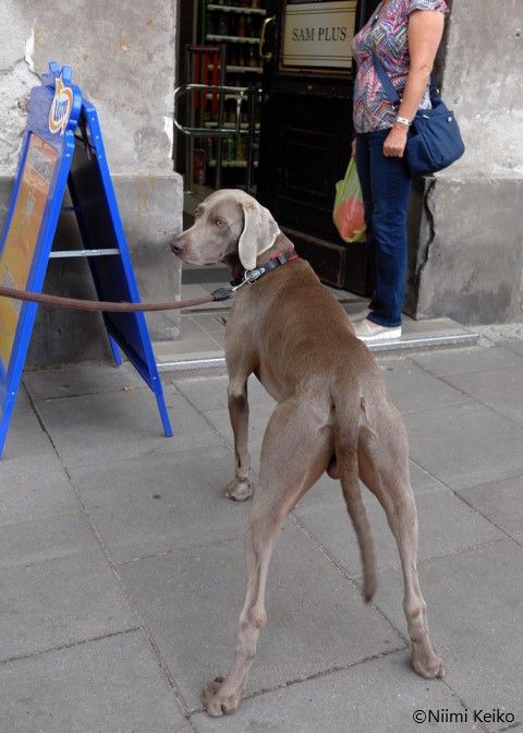 スーパー・マーケットの前につながれたワイマラナー犬は、ドアの向こうに人影が見えるたびにちぎれんばかりにシッポを振ります。でも飼い主さんでないとわかったとたんに、シッポは力なく垂れ下がります。