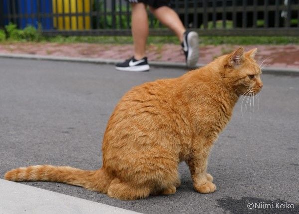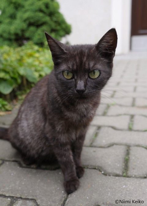 まだ若いメス猫は、最初は警戒した様子でしたが、こちらが姿勢を低くすると、彼女のほうから近づいてくれました。