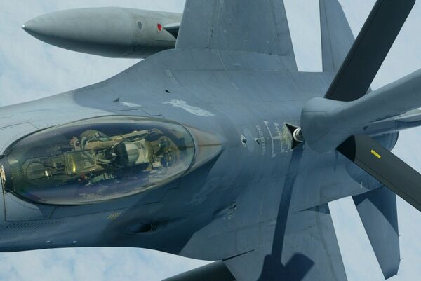 しばらくすると、雲一つない透明な空の中を一機のF-16がバランスを取るように翼を上下に振りながら近づいてきた。すると、給油機の先端からブームという管がスルスルと伸びて行き、その管がF-16の給油口にゆっくりと収まっていった。時間にして約2分で給油完了。あざやかな手際だ。