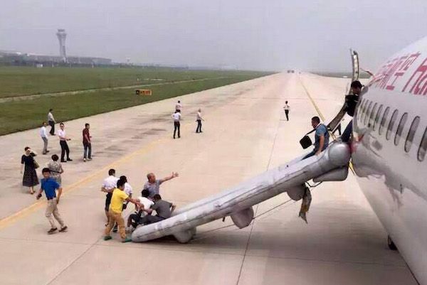 脱出スライドを使って避難する航空事故は世界各地で起きている。写真は2015年、火災警報のため乗客を脱出させた中国・海南航空の事故(写真:AP/アフロ)