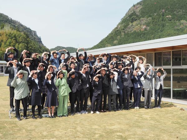 4月2日、神山町では神山まるごと高専の入学式が行われた。写真は記念撮影に臨んだ44人の新入生