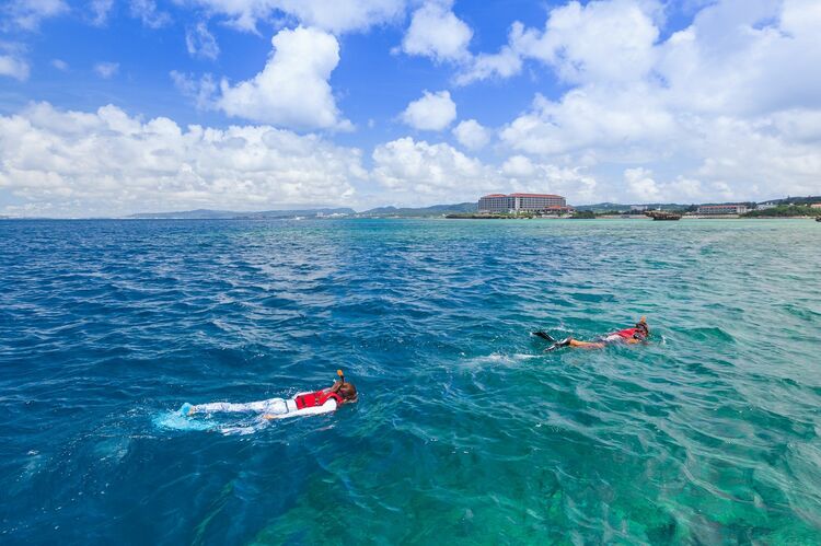シュノーケリングやダイビング、シーカヤック、SUP(スタンドアップパドル)体験のほか、ジェットスキーで引っ張って走るドラゴンボート遊覧、チェア型ボートビッグマーブル遊覧、充実したマリンアクティビティがあります。