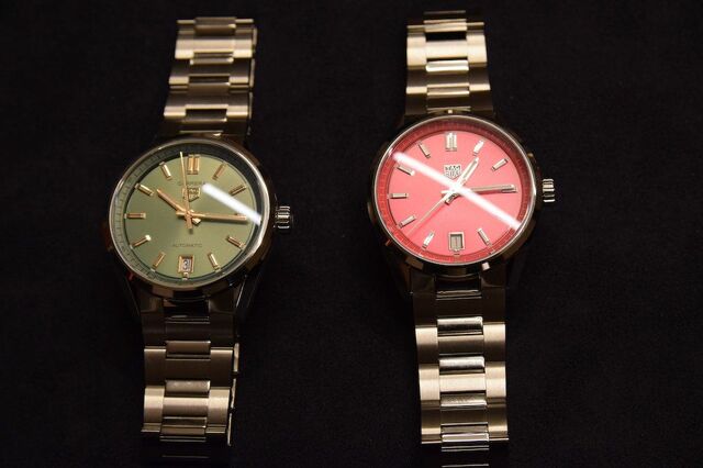 福留 僕もこれは驚きました。『カレラ』はこれまでも結構多彩なカラーバリエーションを展開してましたが、ここまでポップなモデルをラインナップするとは!文字盤のサンレイ仕上げも美しいです。ケース径が36ミリなので、これこそシェアウォッチとして楽しめそうですね。