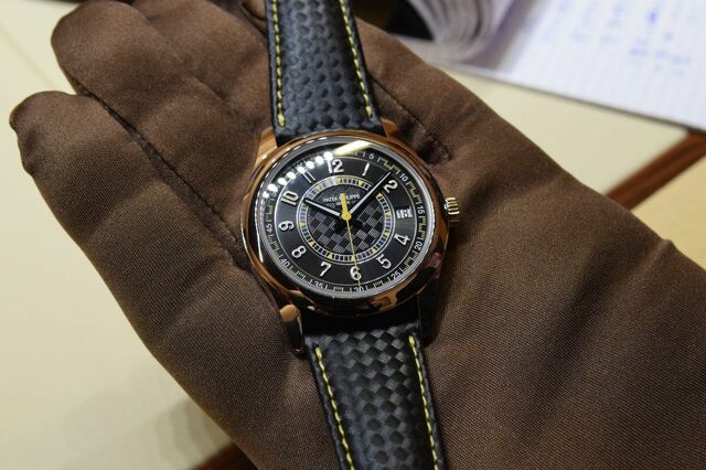 鈴木 パテック フィリップのトラベルタイムは9時側のプッシャーで針を単独稼働させて時間を調整していましたが、昨年、これをリューズ操作へと変更。今年のモデルもリューズひとつで操作できるようです。昨年のモデルはトラベルタイムと年次カレンダーの組み合わせというスゴいものでしたが、今年はトラベルタイムのみというシンプルなモデルでした。