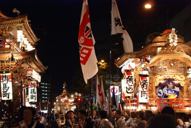 夜の中心街に御殿屋台が集結