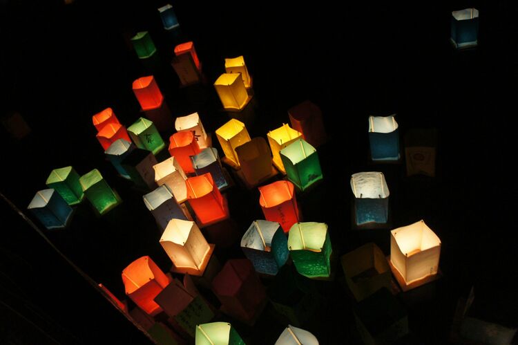 「浜名湖かんざんじ温泉灯篭流し花火大会」の灯篭流し