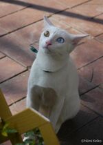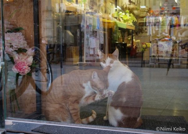 招き猫が2匹いる花屋さんです。この猫たちと遊ぶのが目的で来店する人も多いそうです。